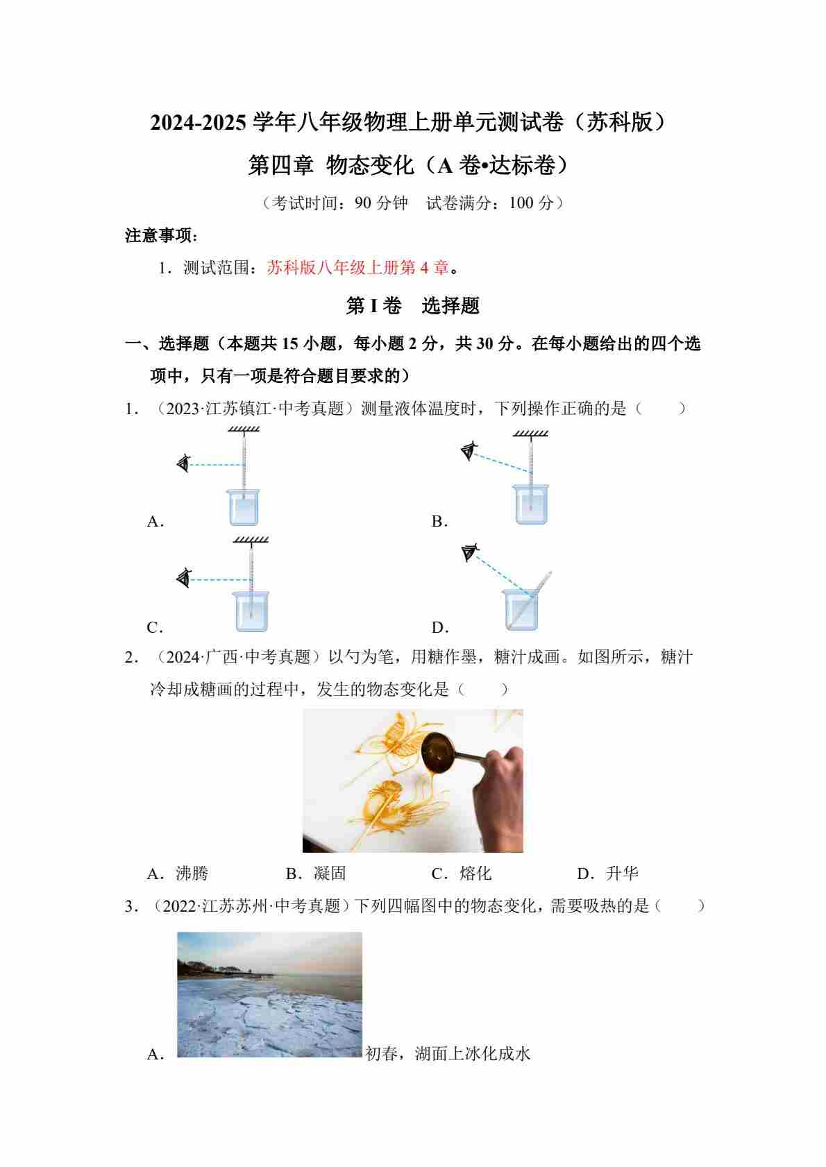 首页 > 全部 > 单元专项 > 第四章 物态变化【单元测试·达标卷】(原卷版)