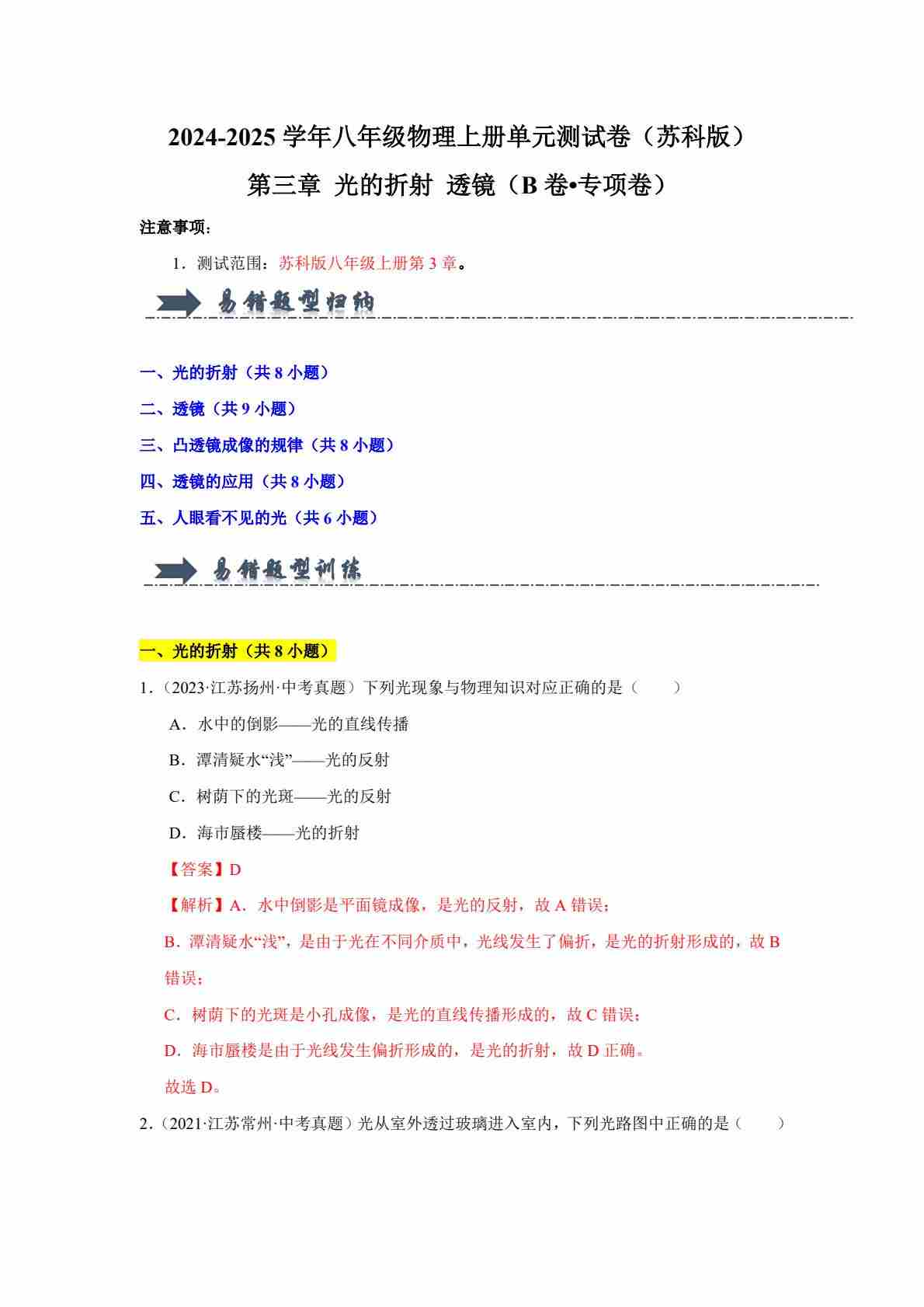 首页 > 全部 > 单元专项 > 第三章 光的折射 透镜【单元测试·专项卷】(解析版)