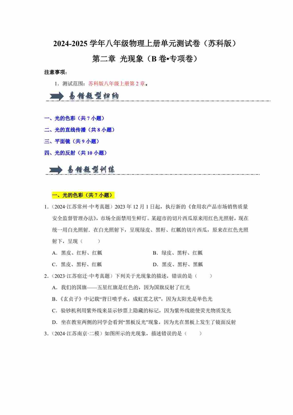 首页 > 全部 > 单元专项 > 第二章 光现象【单元测试·专项卷】(原卷版)