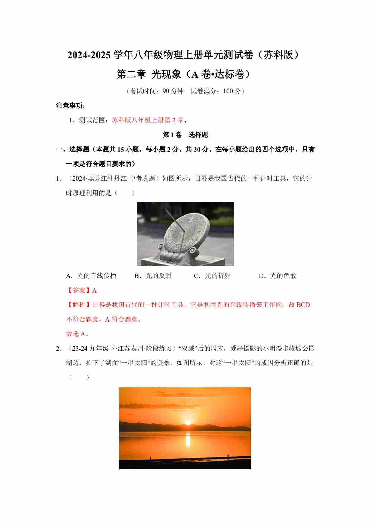 首页 > 全部 > 单元专项 > 第二章 光现象【单元测试·达标卷】(解析版)