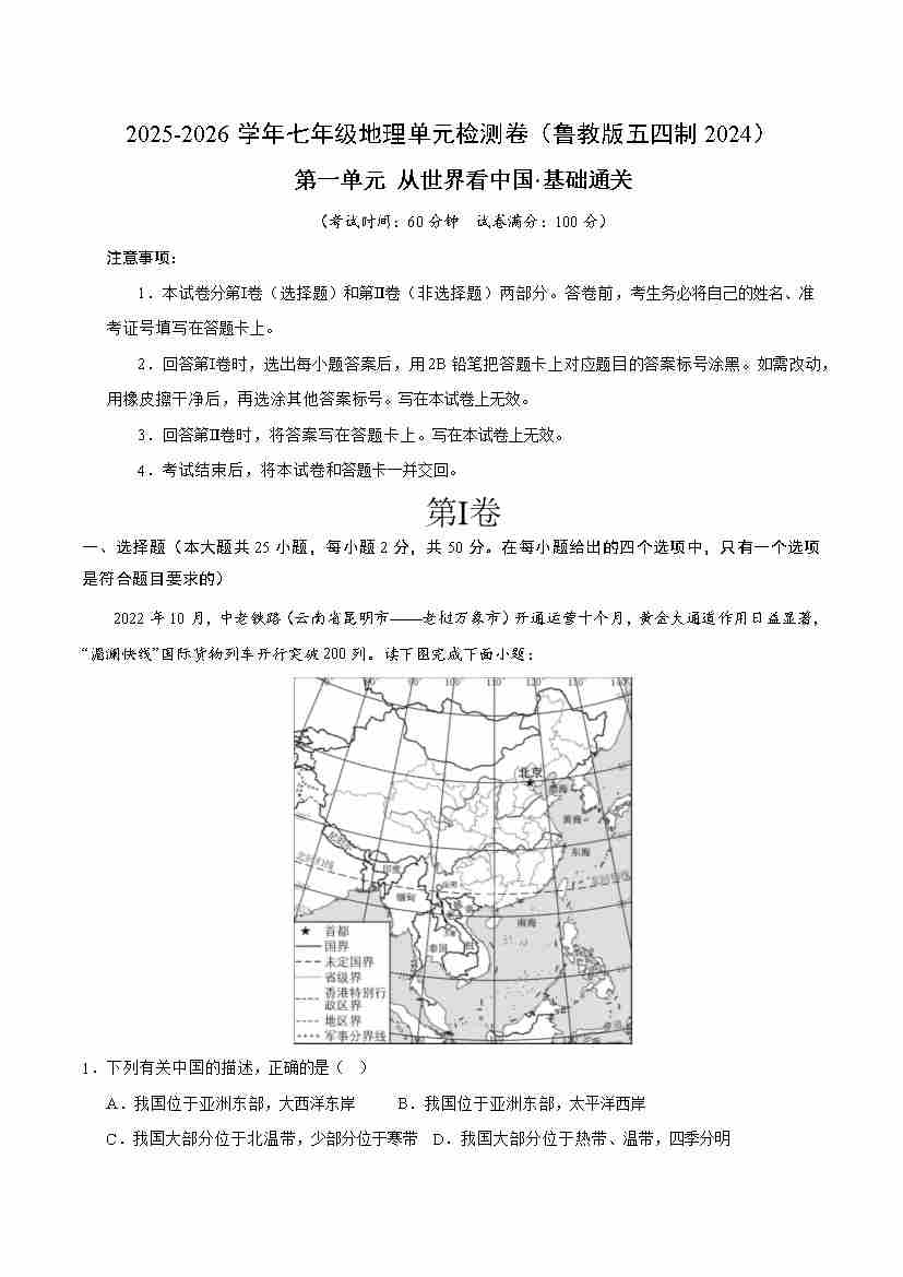 首页 > 全部 > 单元基础卷 > 七上地理第一章测试·基础卷(教师版)