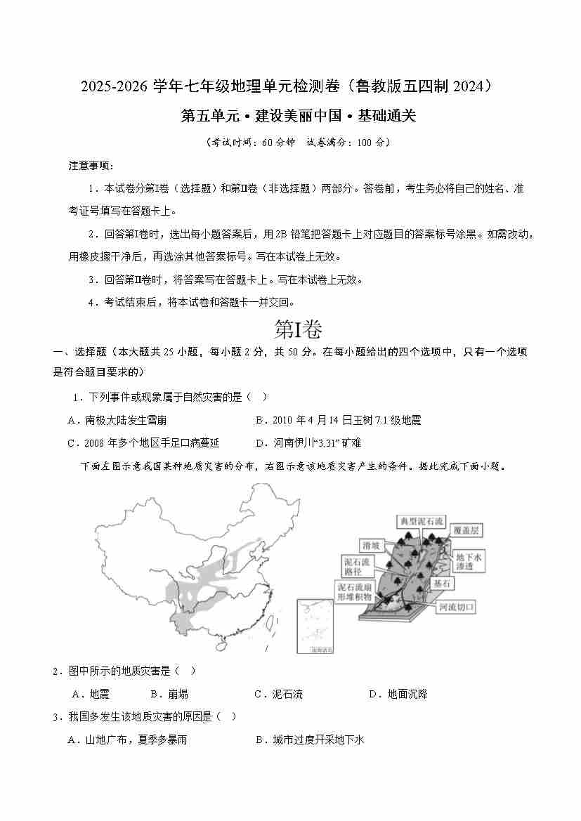 首页 > 全部 > 单元基础卷 > 七上地理第五章测试·基础卷(考试版A4)