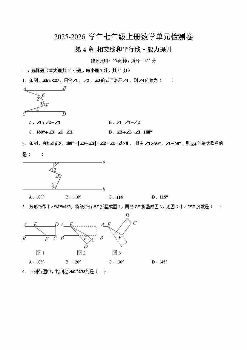 七上数学第4章测试·提升卷(考试版A4)