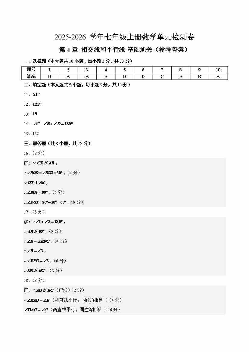 首页 > 全部 > 单元测试 > 七上数学第4章测试·基础卷(答案及评分标准)