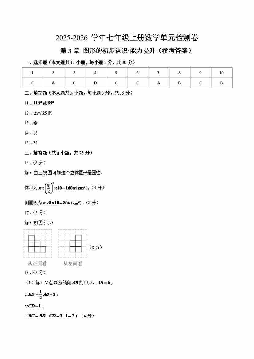 首页 > 全部 > 单元测试 > 七上数学第3章 图形的初步认识测试·提升卷(答案及评分标准)