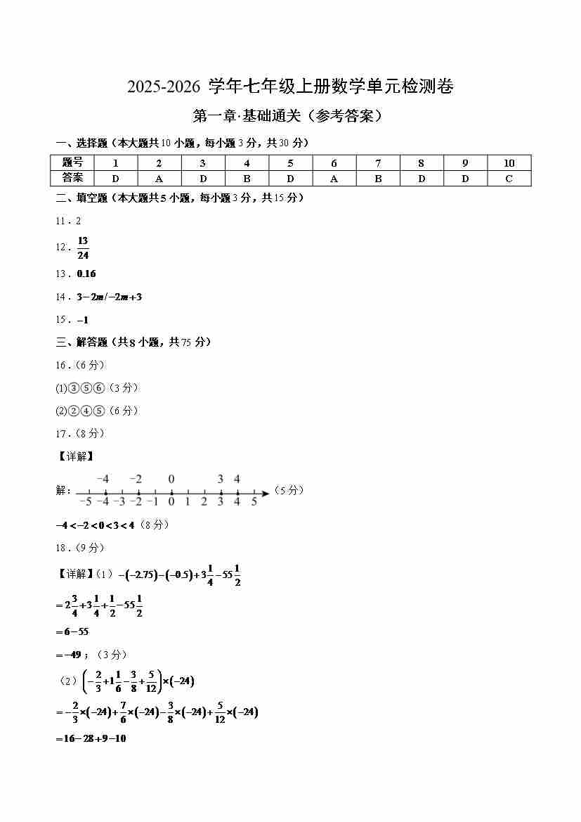 首页 > 全部 > 单元测试 > 七上数学第1章测试·基础卷(答案及评分标准)
