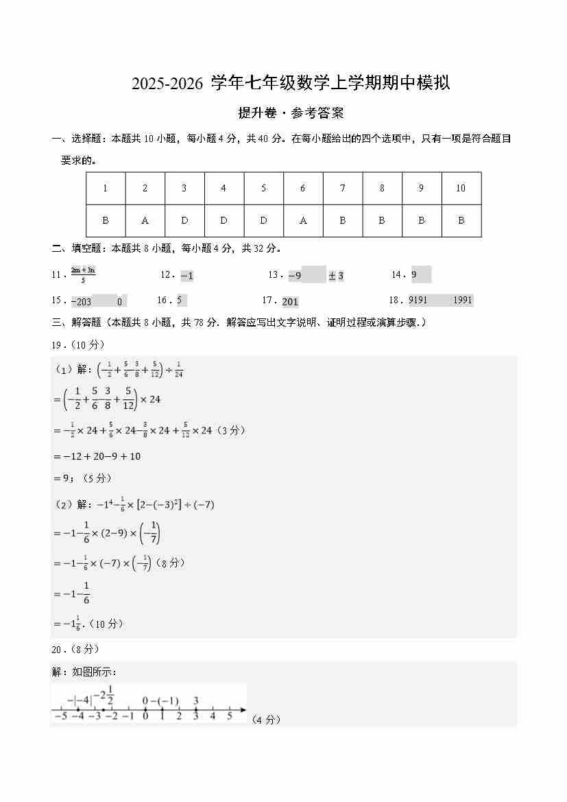 首页 > 全部 > 期中试卷 > 七年级数学上学期期中模拟(华东师大版2024,高效培优·提升卷)(参考答案)