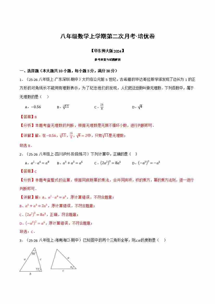 首页 > 全部 > 月考试卷 > 八年级数学上学期第二次月考·培优卷(华东师大版2024,举一反三,测试范围:第10章 数的开方~第13章 勾股定理)(教师版)
