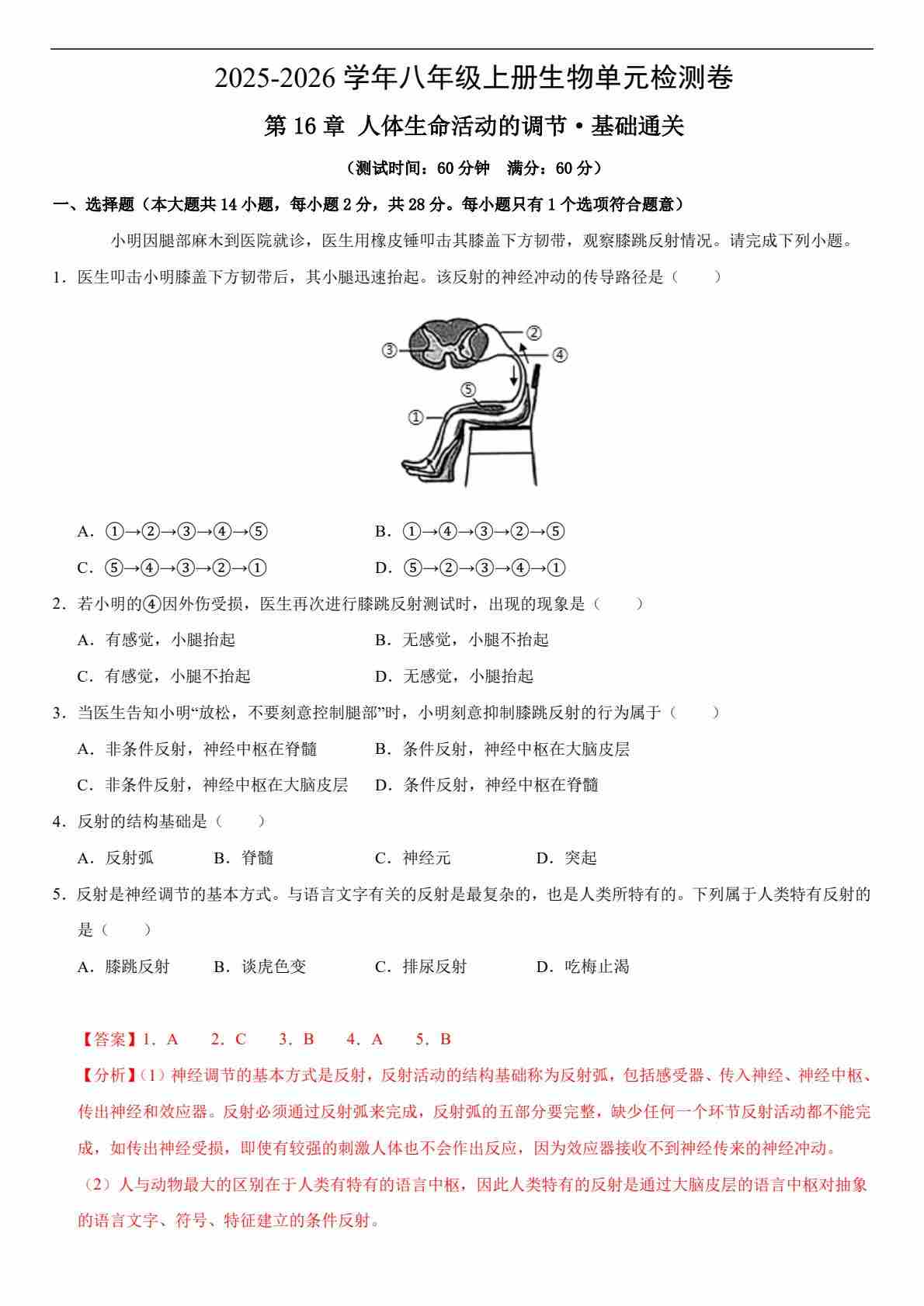 首页 > 全部 > 单元基础卷 > 第16章 人体生命活动的调节(单元测试·基础卷)(解析版)