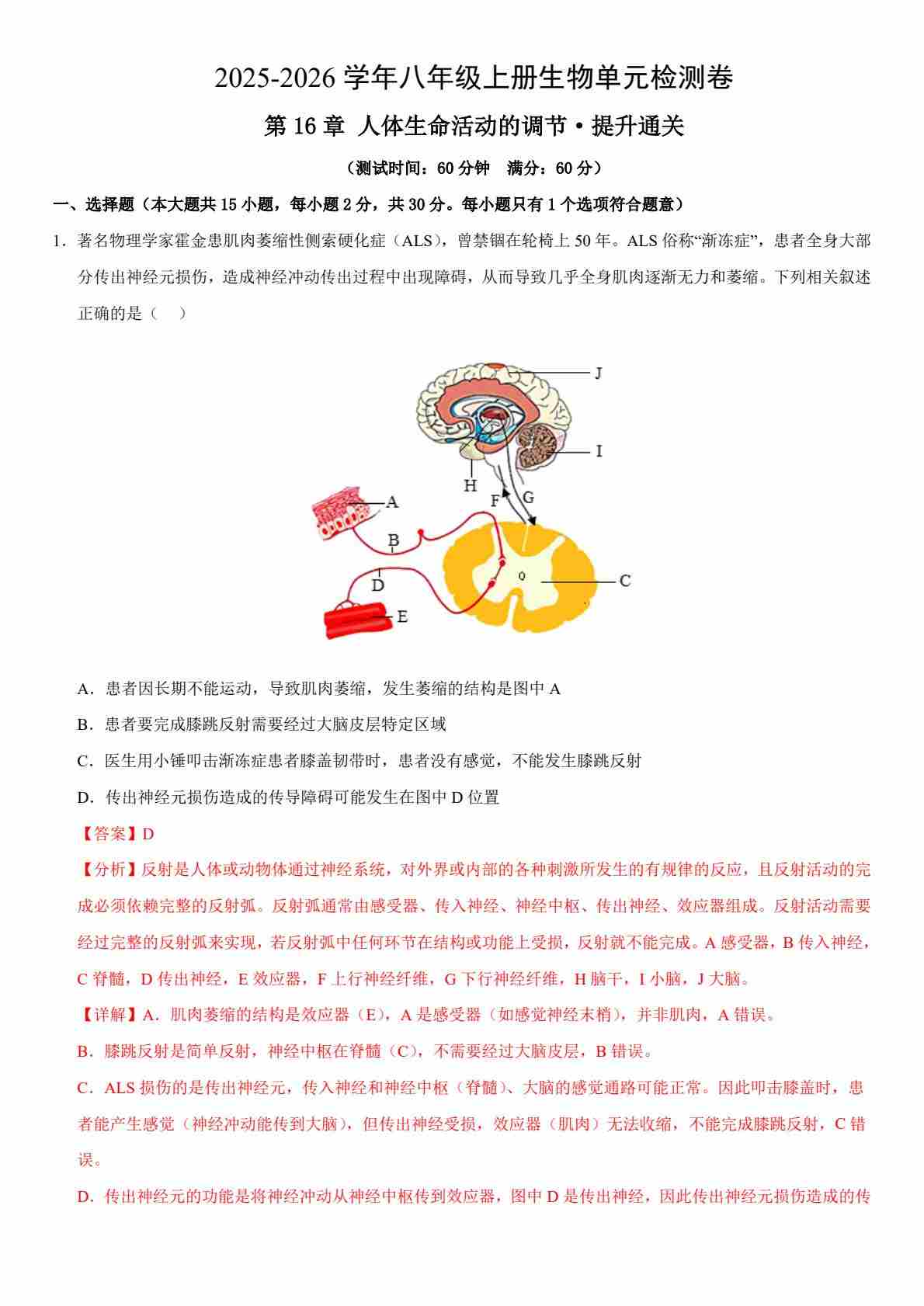 首页 > 全部 > 单元提升卷 > 第16章 人体生命活动的调节(单元测试·提升卷)(解析版)99
