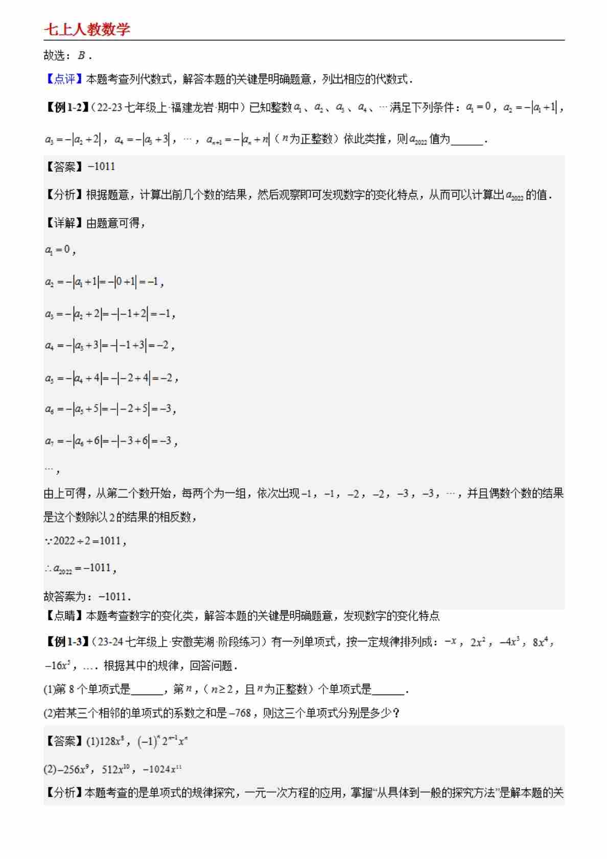 首页 > 全部 > 专项练习 > 【七上人教数学】重难点拓展:整式中两种规律探索问题(解析版)