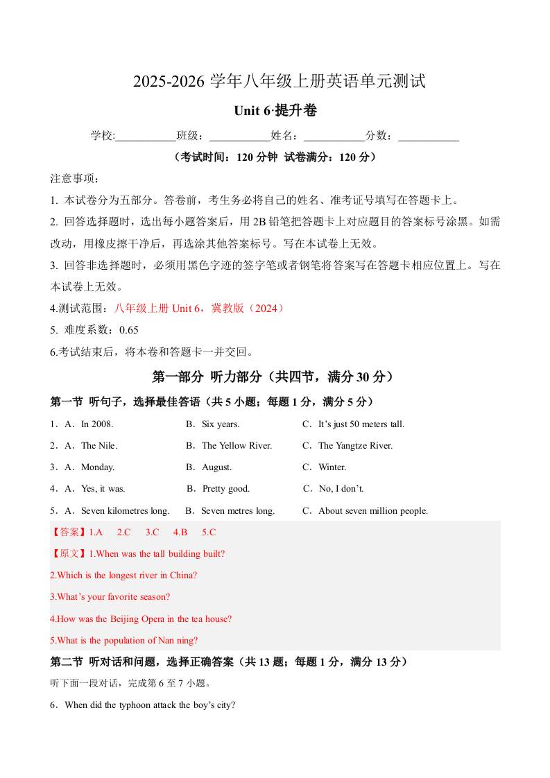 首页 > 全部 > 单元测试卷 > 八年级英语上册Unit6单元测试·提升卷(解析版)8