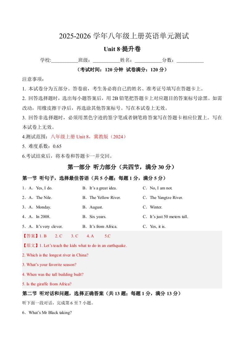 首页 > 全部 > 单元测试卷 > 八年级英语上册Unit8单元测试·提升卷(解析版)