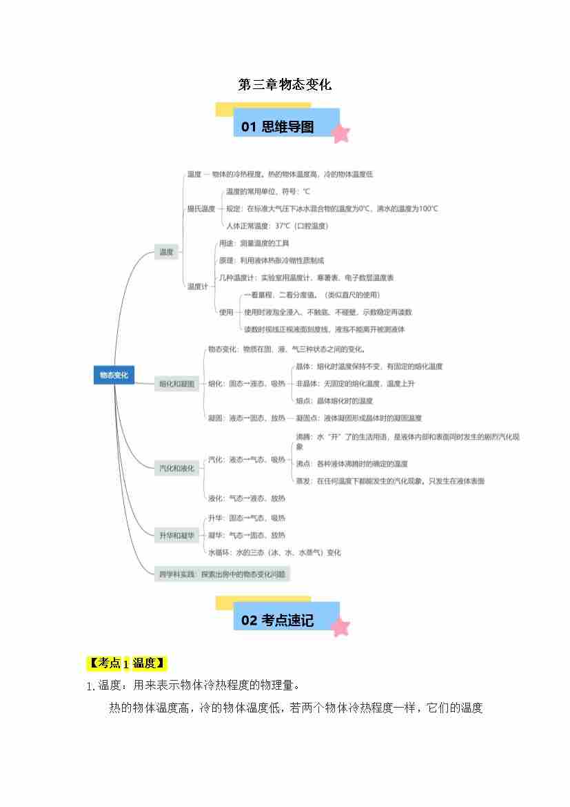 首页 > 全部 > 速记清单 > 第3章 物态变化【速记清单】(原卷版)-八年级物理上册单元速记·巧练(新人教版2024)