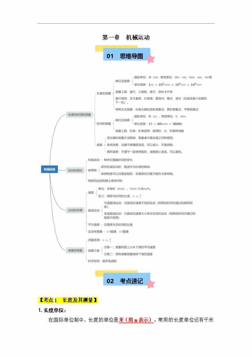 首页 > 全部 > 速记清单 > 第1章 机械运动【速记清单】(解析版)-八年级物理上册单元速记·巧练(新人教版2024)