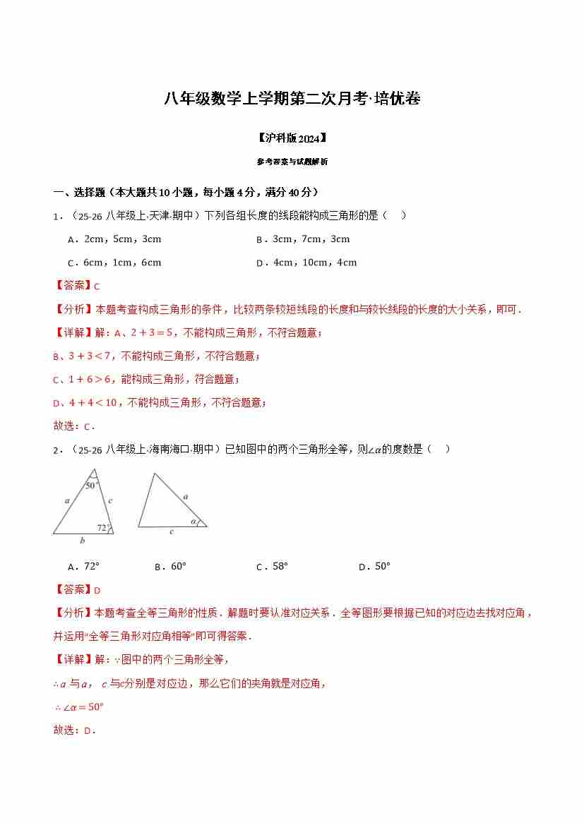 首页 > 全部 > 月考试卷 > 八年级数学上学期第二次月考·培优卷(沪科版2024,举一反三)(教师版)