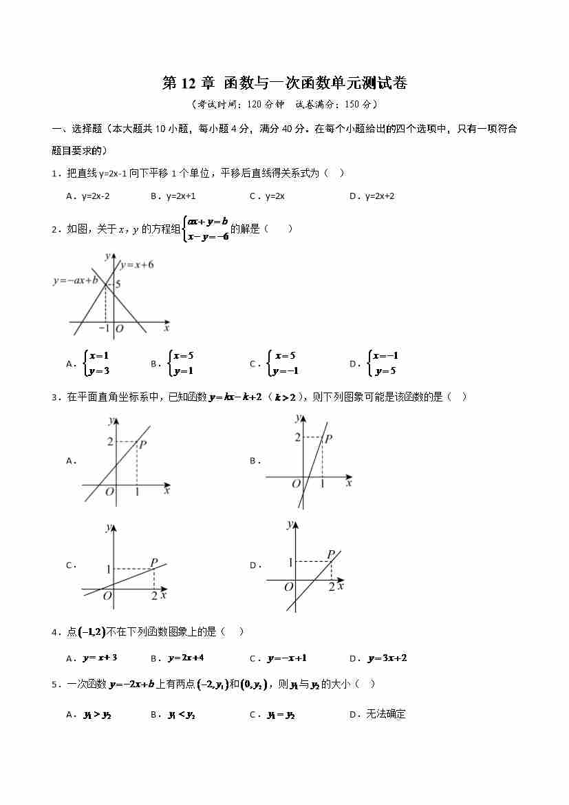 第12章 函数与一次函数(高效培优单元测试·强化卷)(学生版)