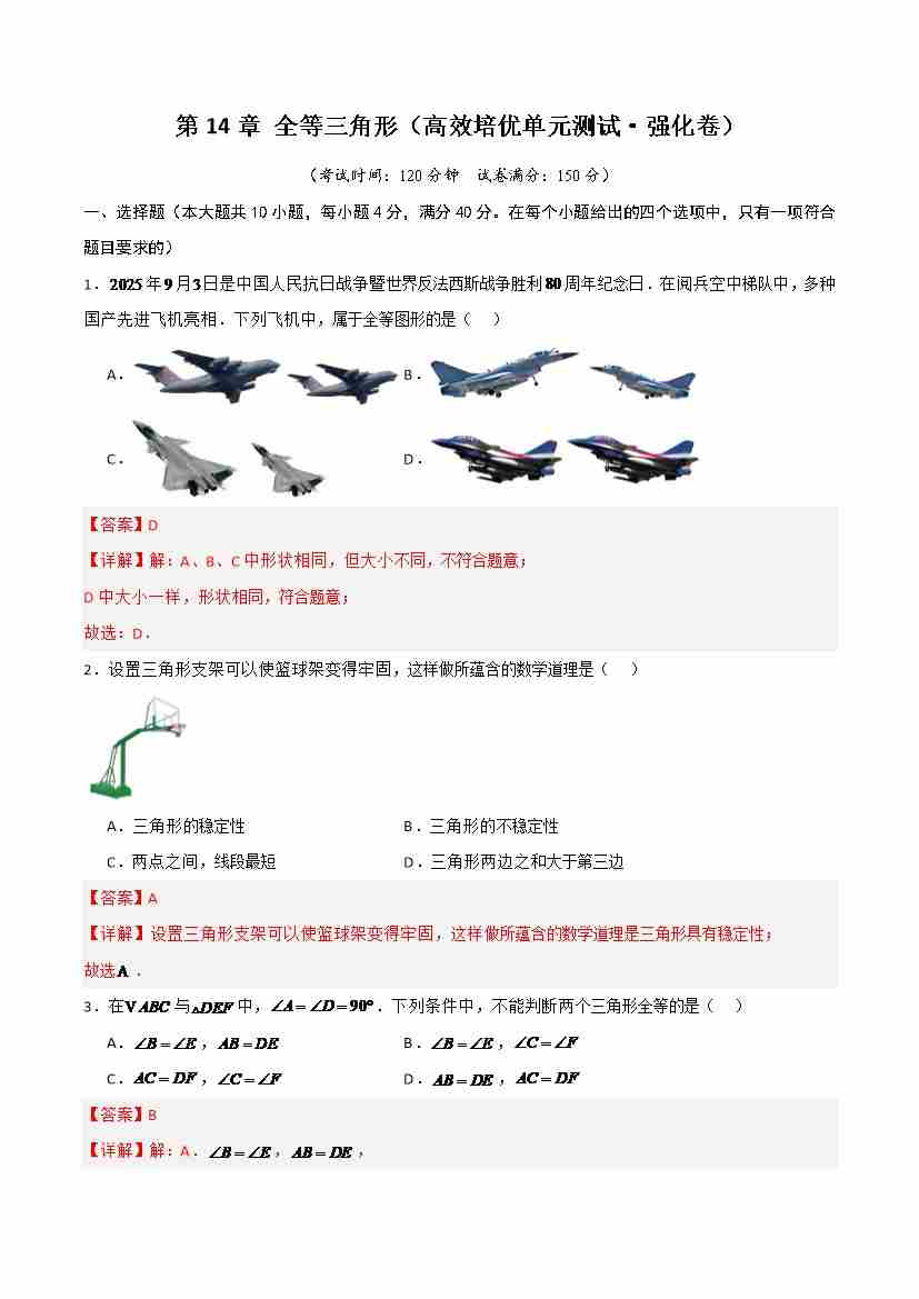 首页 > 全部 > 单元检测 > 第14章 全等三角形(高效培优单元测试·强化卷)教师版