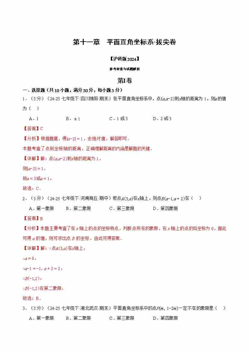 首页 > 全部 > 举一反三 > 第十一章 平面直角坐标系(举一反三单元测试·拔尖卷)(教师版)