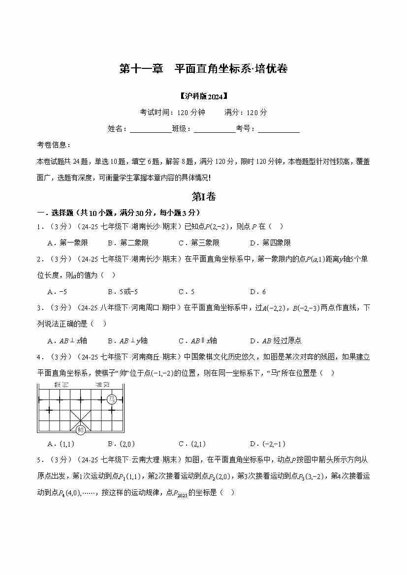 首页 > 全部 > 举一反三 > 第十一章 平面直角坐标系(举一反三单元测试·培优卷)(学生版)