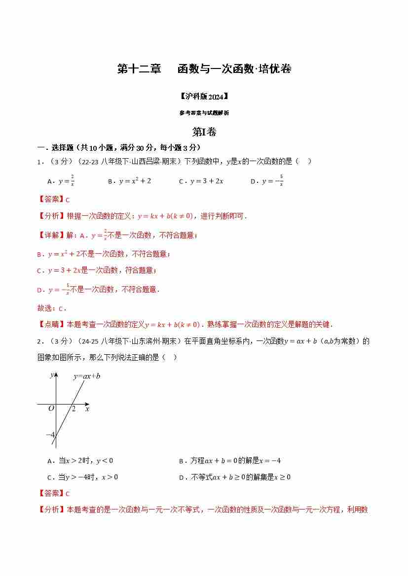 首页 > 全部 > 举一反三 > 第十二章 函数与一次函数(举一反三单元测试·培优卷)(教师版)