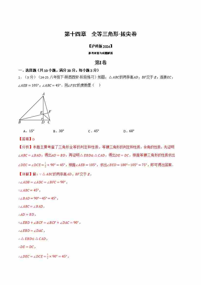 第十四章 全等三角形(举一反三单元测试·拔尖卷)(教师版)