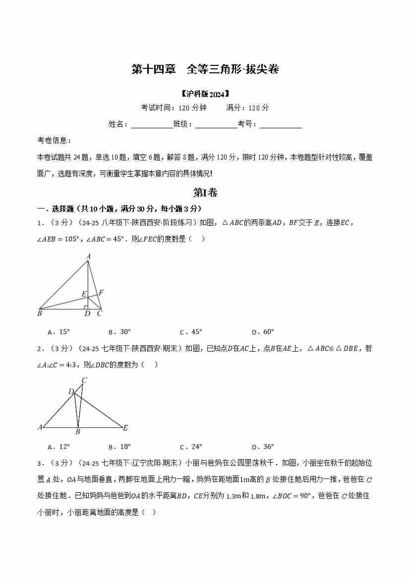 首页 > 全部 > 举一反三 > 第十四章 全等三角形(举一反三单元测试·拔尖卷)(学生版)