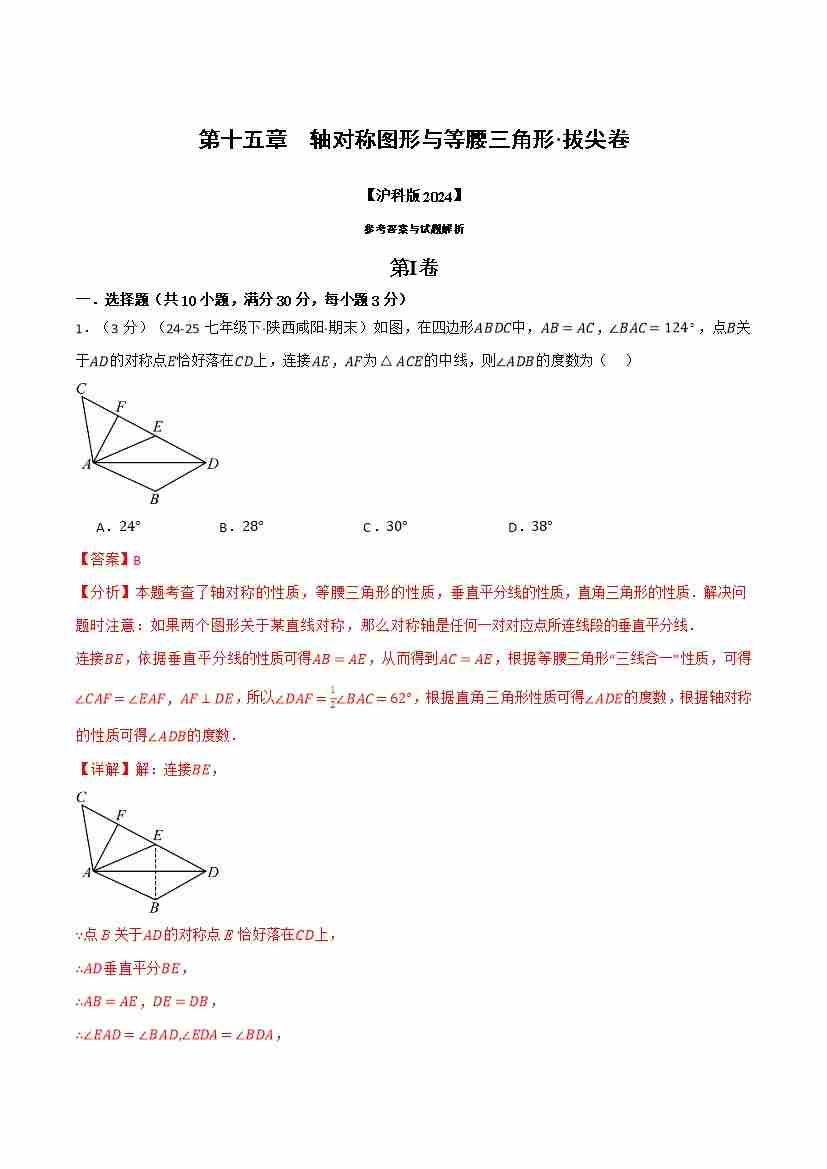 首页 > 全部 > 举一反三 > 第十五章 轴对称图形与等腰三角形(举一反三单元测试·拔尖卷)(解析版)