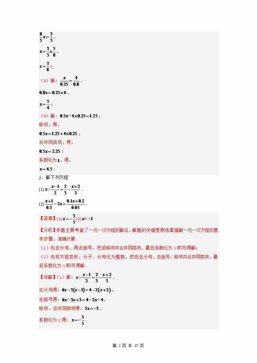 首页 > 全部 > 常考题型 > 专题13 解一元一次方程专项训练(40道)(解析版)