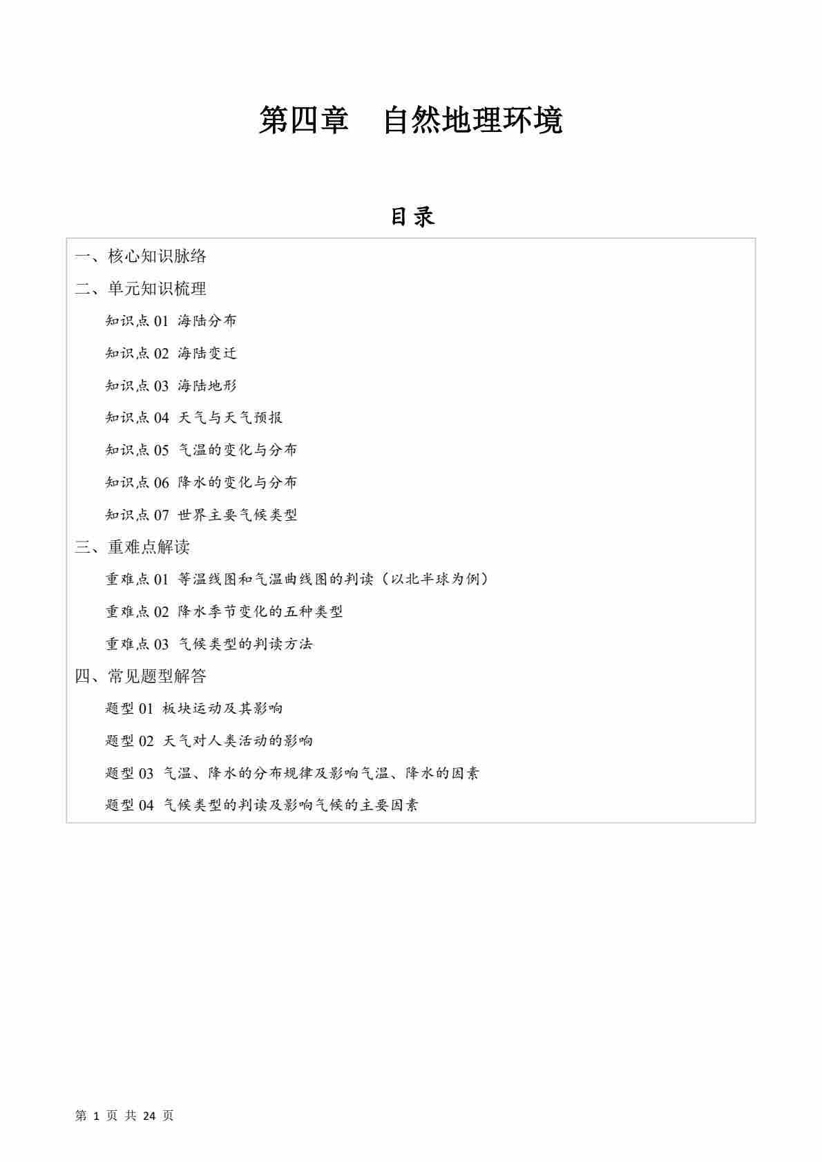 首页 > 全部 > 考点清单 > 第四章 自然地理环境(答案版)【速记清单】-2024-2025学年七年级地理上册单元速记·巧练(粤人版2024)