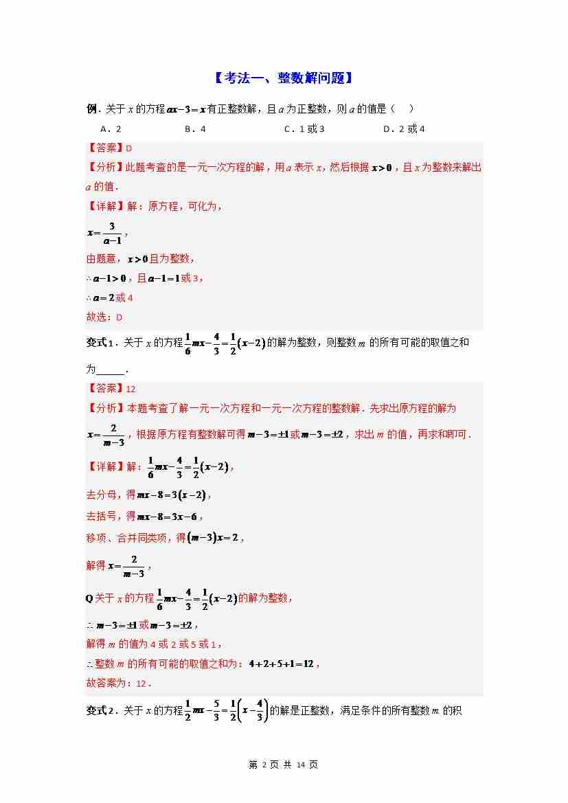 首页 > 全部 > 常考题型 > 专题12 一元一次方程特殊解的四种考法(解析版)
