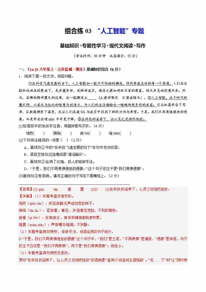 组合练03 “人工智能”专题(解析版)