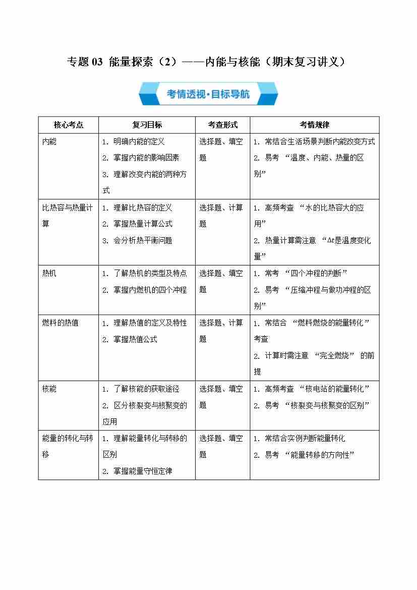 专题03 能量探索(2)——内能与核能(期末复习讲义)(解析版)