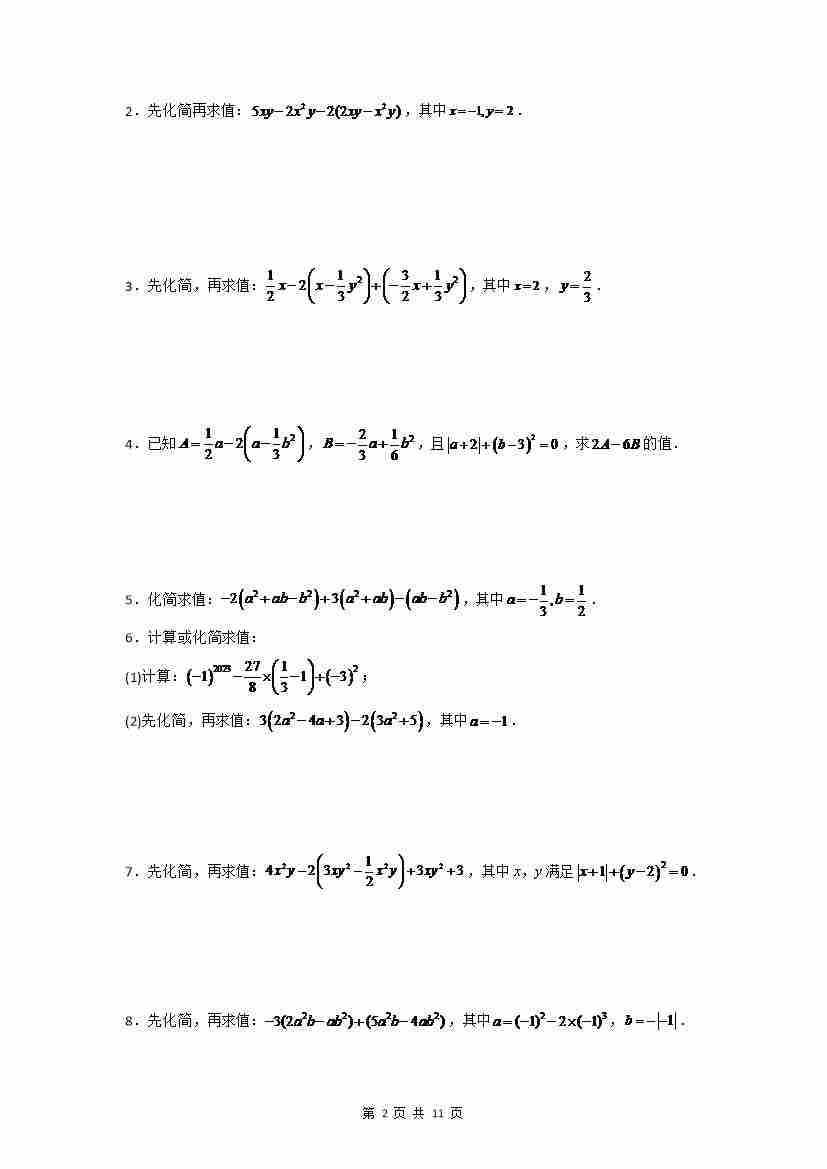 首页 > 全部 > 常考题型 > 专题07 整式的加减化简求值解答题专项训练(50道)(原卷版)