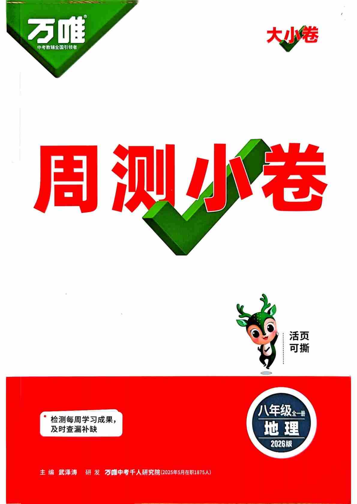 首页 > 全部 > 热门教辅 > 2026《大小卷》八年级全一册地理——周测小卷