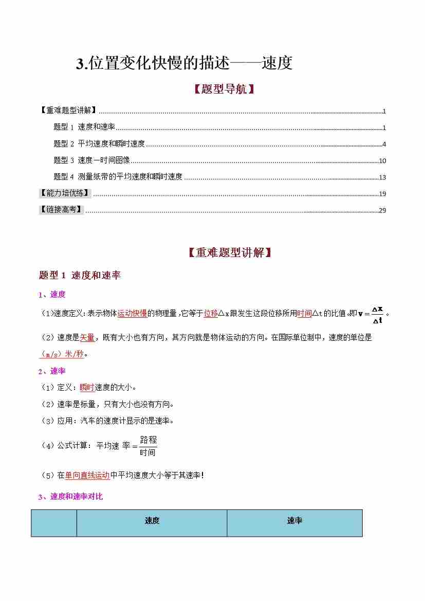首页 > 全部 > 同步讲义 > 3.位置变化快慢的描述——速度(高效培优讲义)(教师版)