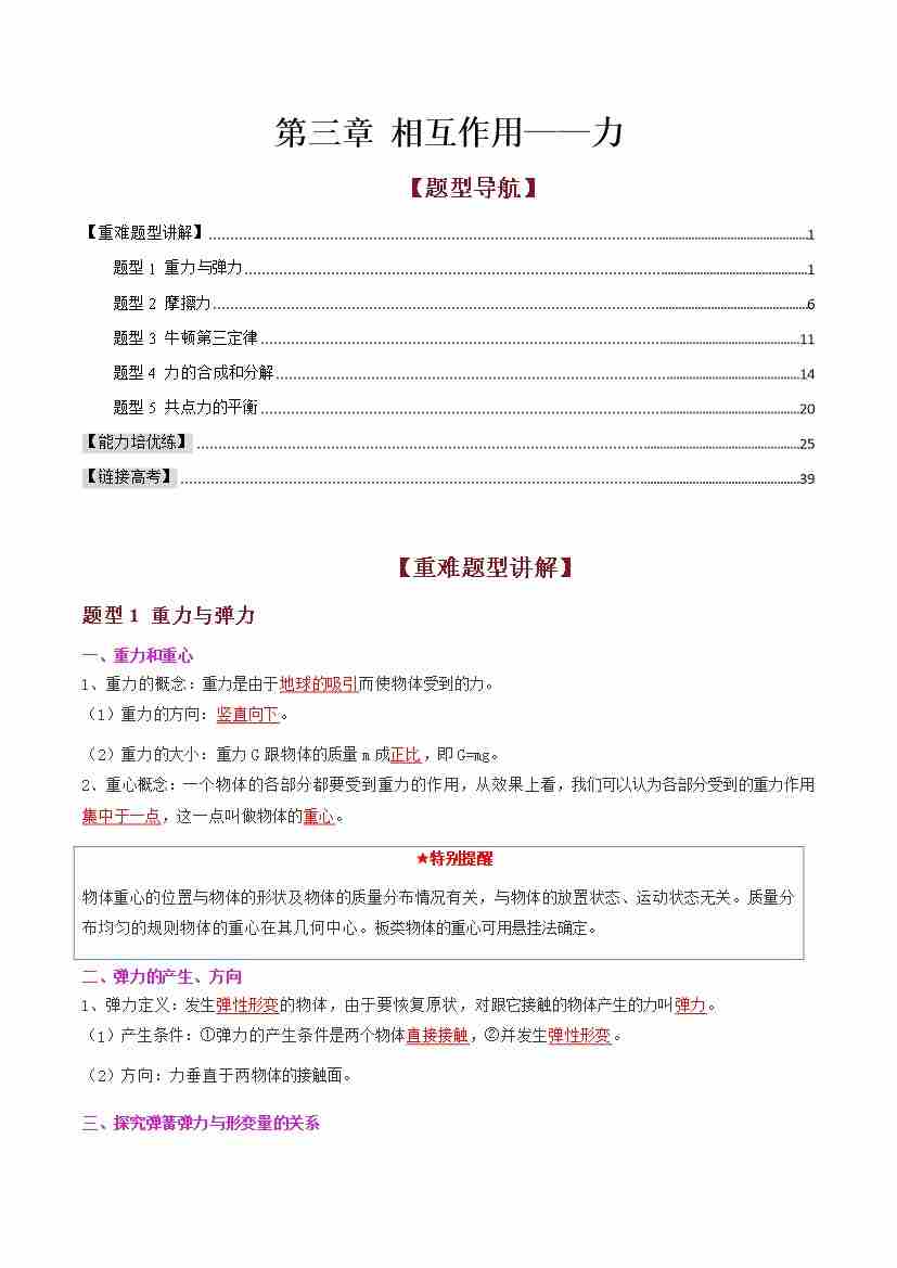 首页 > 全部 > 同步讲义 > 第三章 相互作用——力(高效培优·复习讲义)(教师版)