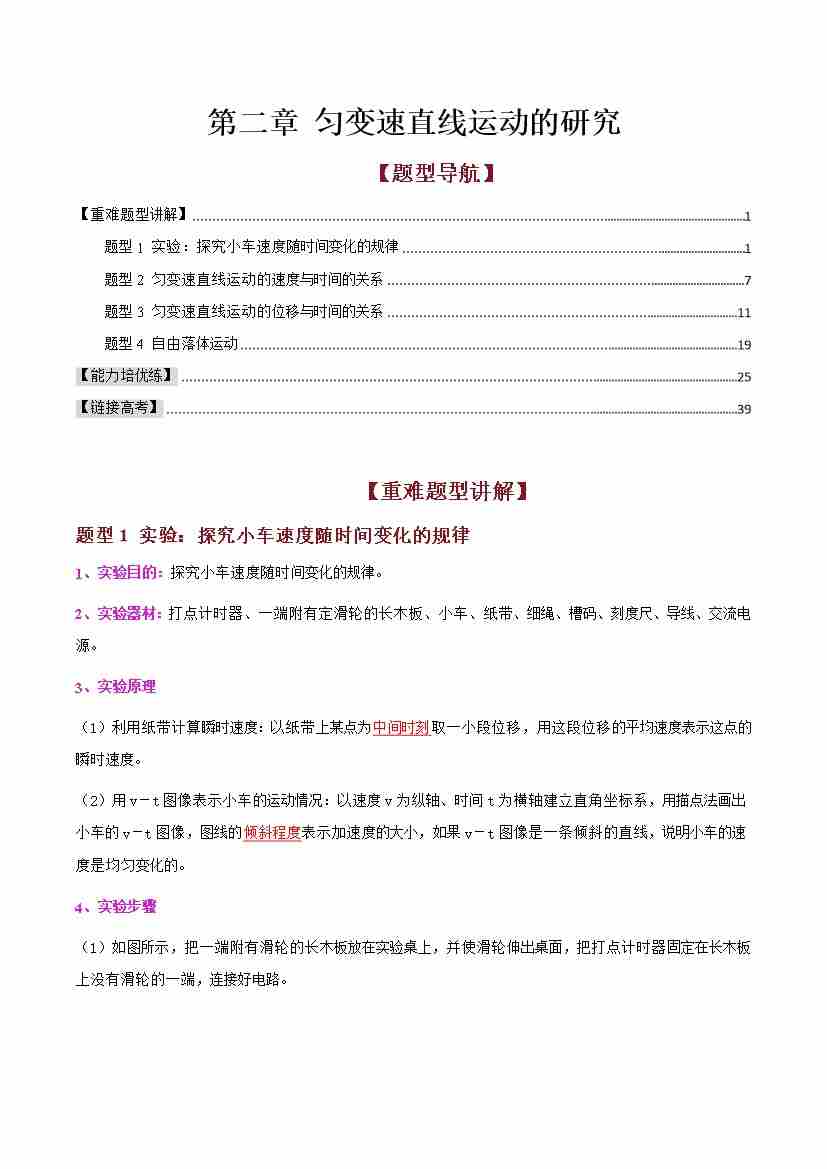 首页 > 全部 > 同步讲义 > 第二章 匀变速直线运动的研究(高效培优·复习讲义)(教师版)