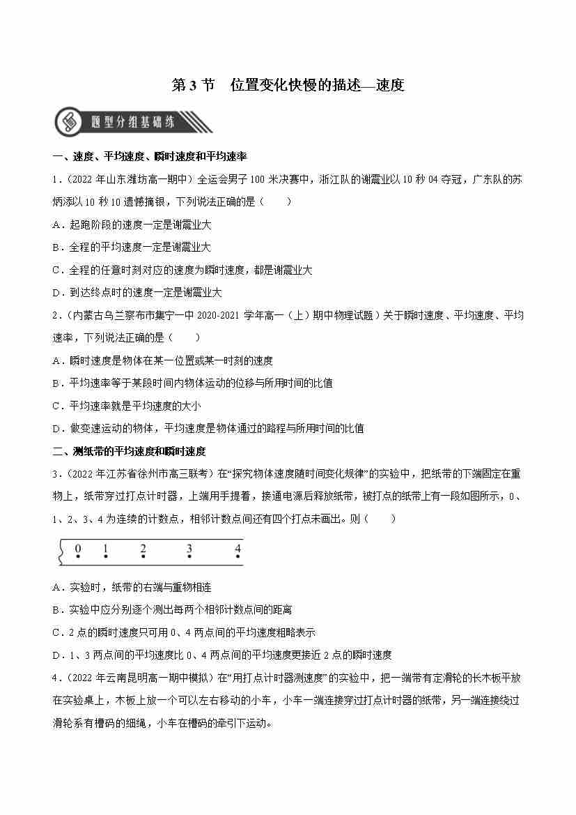首页 > 全部 > 分层作业 > 1.3 位置变化快慢的描述—速度(分层作业)(原卷版)