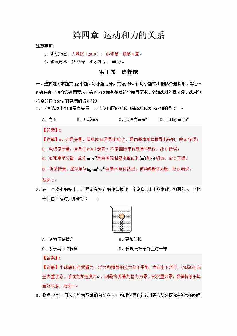 首页 > 全部 > 单元测试 > 第四章 运动和力的关系(高效培优·单元测试)(教师版)