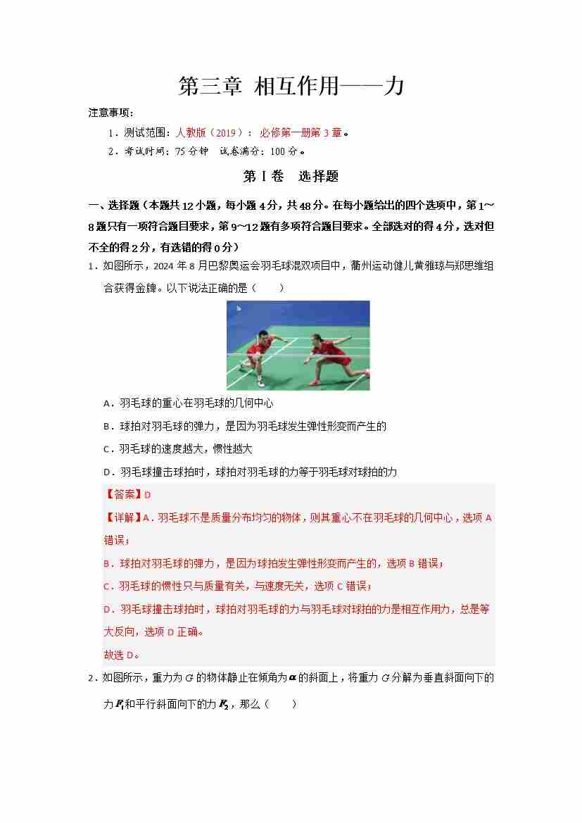 首页 > 全部 > 单元测试 > 第三章 相互作用——力(高效培优·单元测试)(教师版)