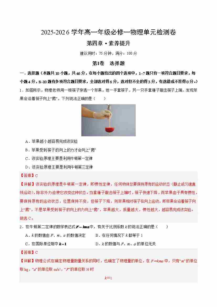 首页 > 全部 > 单元测试 > 高一上物理第四章 单元测试·提升卷(教师版)