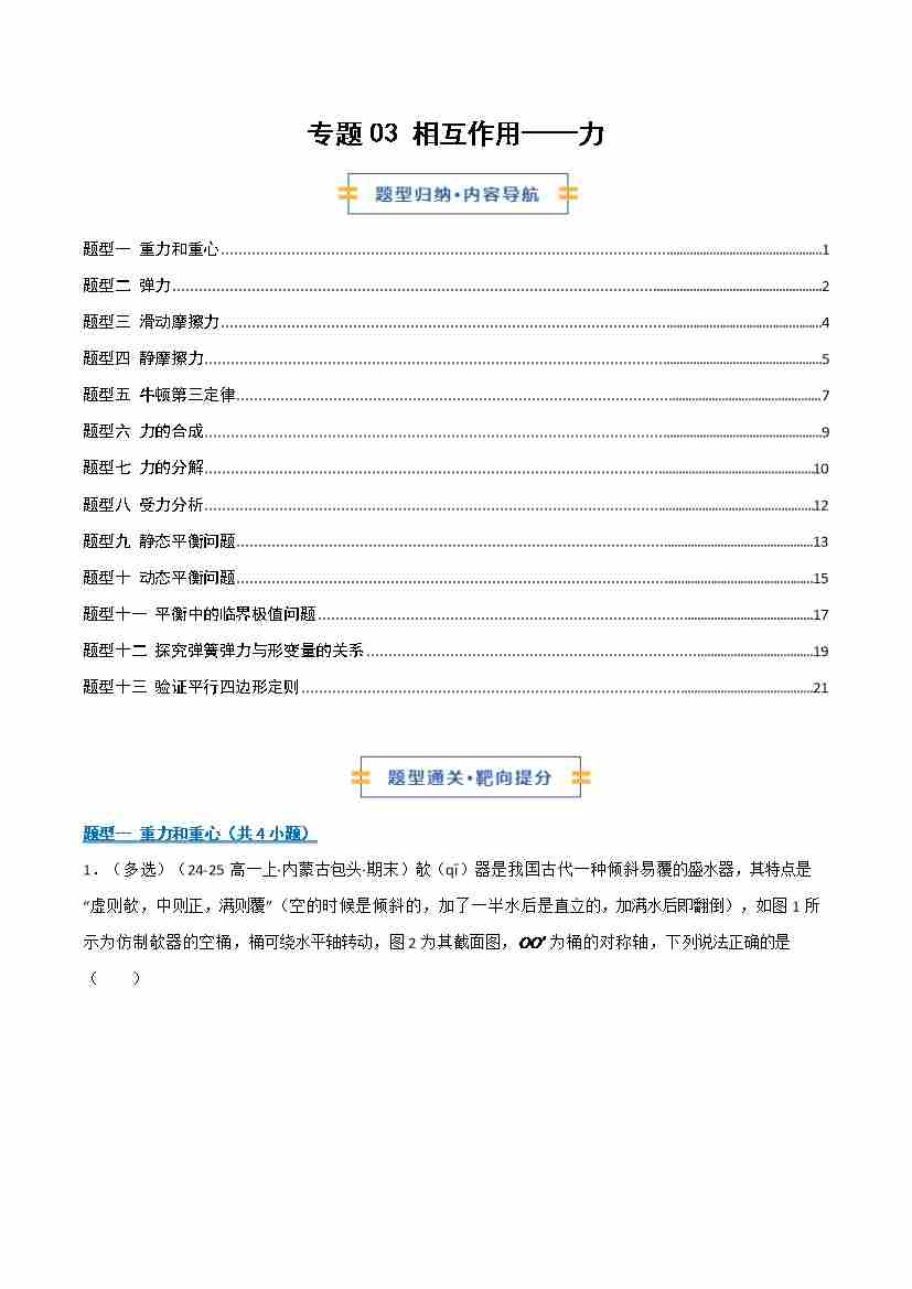 首页 > 全部 > 期中专项 > 专题03 相互作用—力(期中专项训练)(学生版)