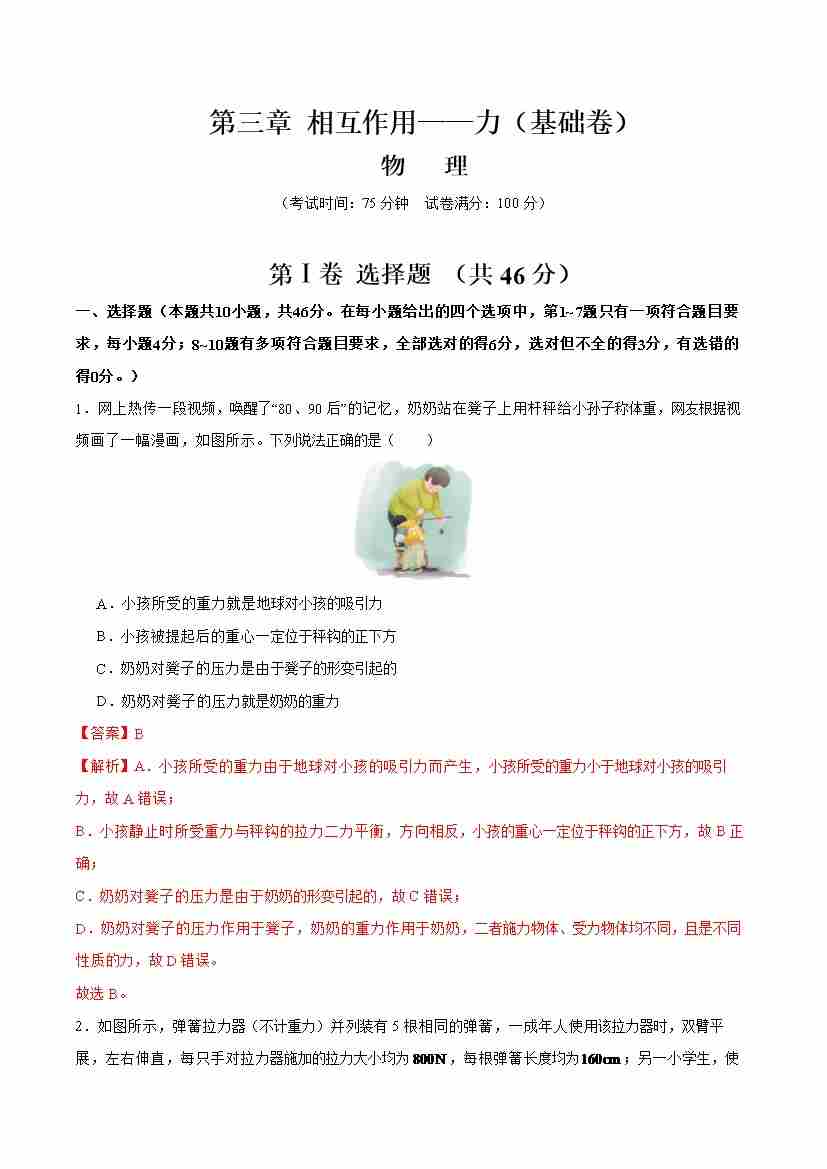 首页 > 全部 > 举一反三 > 第三章 相互作用——力(举一反三单元试·基础卷)(教师版)