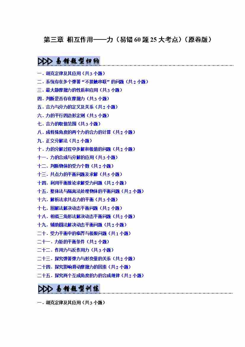 首页 > 全部 > 易错题 > 第3章 相互作用——力(易错60题25大考点)(学生版)
