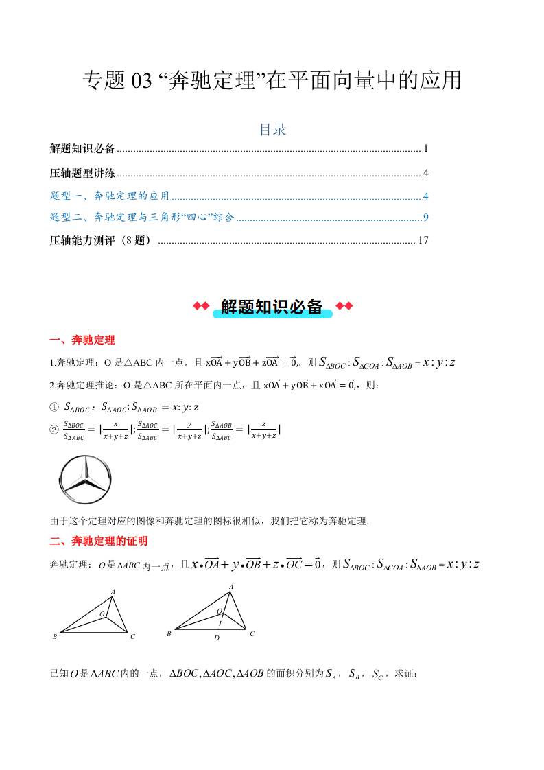 首页 > 全部 > 常考压轴题 > 专题03 “奔驰定理”在平面向量中的应用(2大压轴考法)教师版