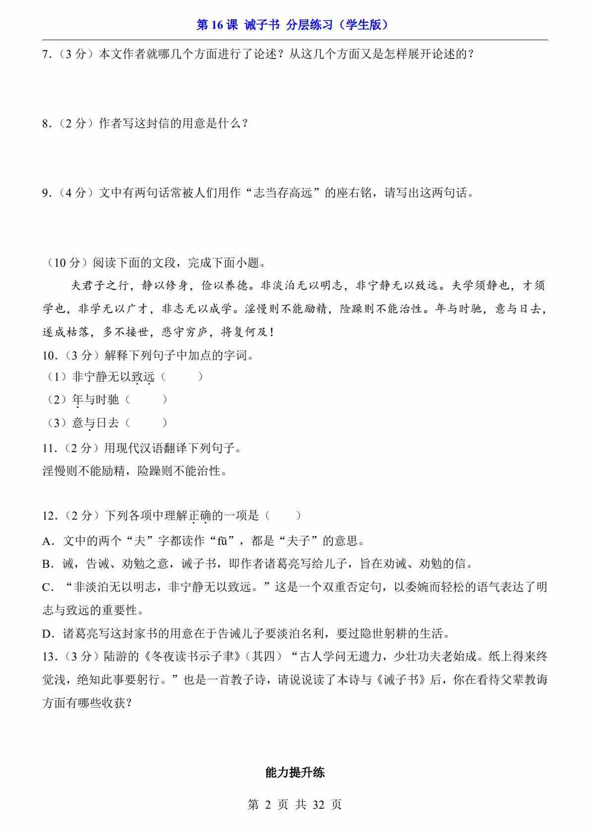 首页 > 全部 > 分层练习 > 第16课 诫子书(分层练习)