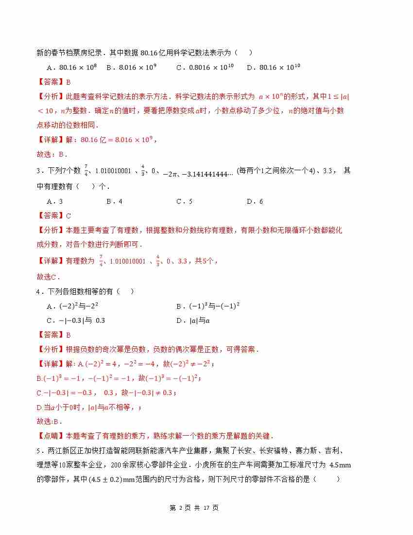 首页 > 全部 > 第一次月考 > 七年级数学第一次月考卷(北师大版2024)(全解全析)A4版