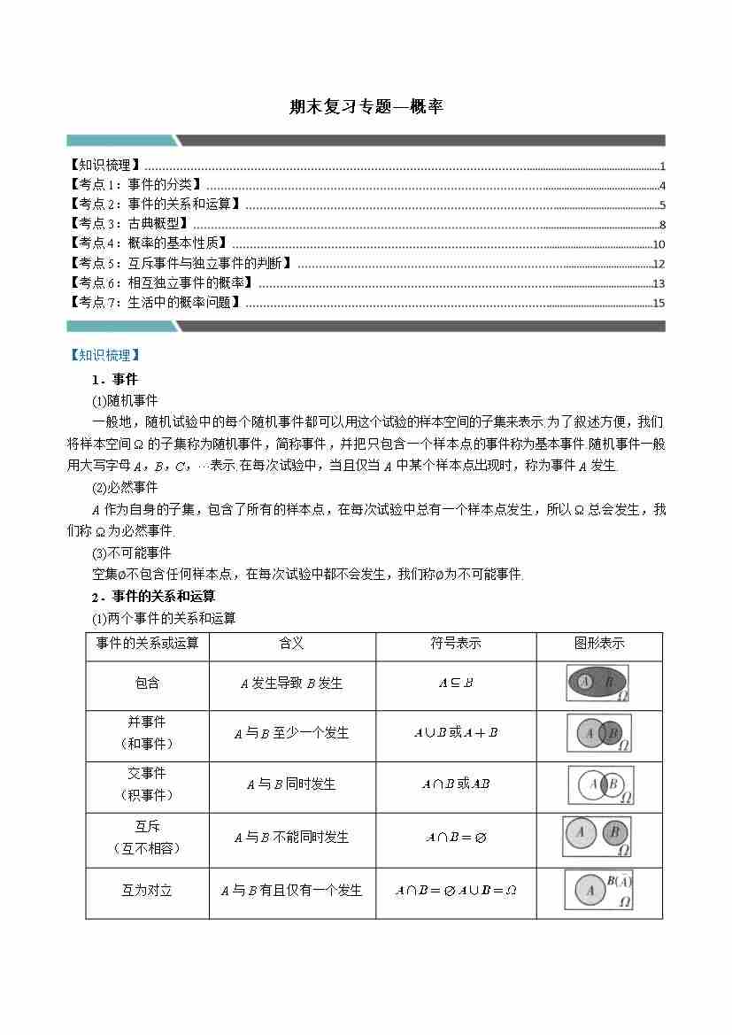 首页 > 全部 > 期末专项 > 期末复习专题— 概率(7类大考点)(人教A版2019必修第二册)(学生版)