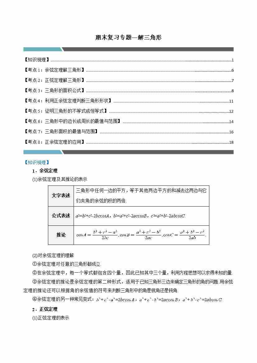 首页 > 全部 > 期末专项 > 期末复习专题— 解三角形(8类大考点)(人教A版2019必修第二册)(学生版)